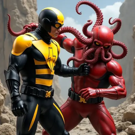 프롬프트에는 반드시 “검정과 노란색 복장을 입은 슈퍼히어로…”라고 명시하세요. 그렇지 않으면 LoRA가 그를 파란색과 빨간색으로 칠할 수 있으며, 이는 매우 나쁜 맛으로 간주됩니다.