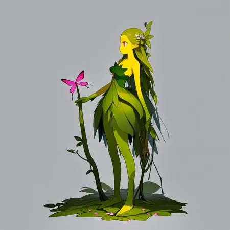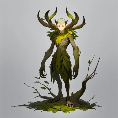 此模型能够生成任意风格的角色,但最擅长生成带有拟人化树木和植物元素的角色。