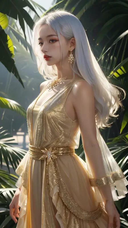 jinmeng, golden layered dress, sparkle, see-through, jewelry