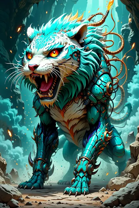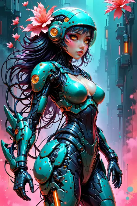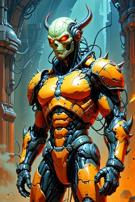 大家好,介绍我的新LORA - 生物机械艺术世界——它为你的图像添加大胆的生物机械元素,融合了有机形态与技术细节,灵感来自著名艺术家H.R.吉格尔,并结合独特的90年代卡通风格。
