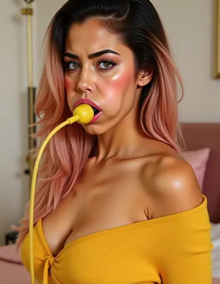 Using the wording "gagged by a (colour) pump Gag " as an example but so long as the prompt contains pump gag this works reliably