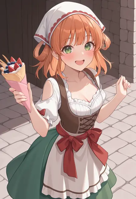 - rinocre, 白い頭飾り, ヘッドスカーフ, ディルンドル, 赤いリボン, ウエストリボン, エプロン, 緑のスカート,