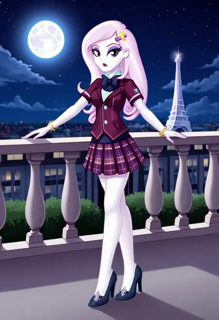 フロール-de-lis、エクエストリアガールズ、1人の女の子、単独、裸の胸、ブラウス、ボウタイ、ブレスレット、衣装、クリスタルプレップアカデミー、クリスタルプレップシャドウボルツ、アイシャドウ、女性、フロール-de-lis風の衣装、短めの袖、メイク、チェック柄スカート、プリーツスカート、スカート、ハイヒール