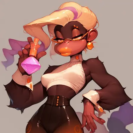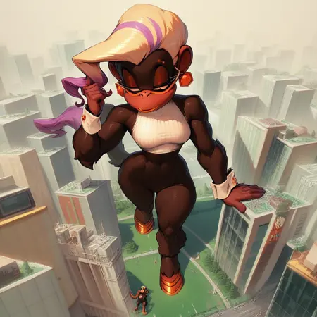 오늘 도나키콩 보나나에서 공개된 신비로운 새 악녀(?) 침팬지(?) 소녀(?) . 표준 Pony SDXL 접두사 사용 후 voidco 침팬지: