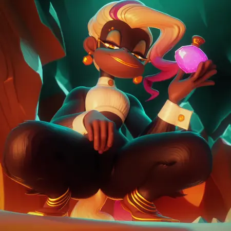 The mysterious new evil (?) chimpanzee (?) girl (?) revealed today in Donkey Kong Bonanza. Use the standard Pony SDXL prefix, then voidco chimpanzee: