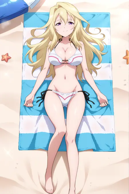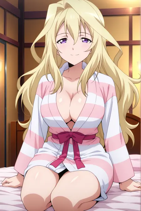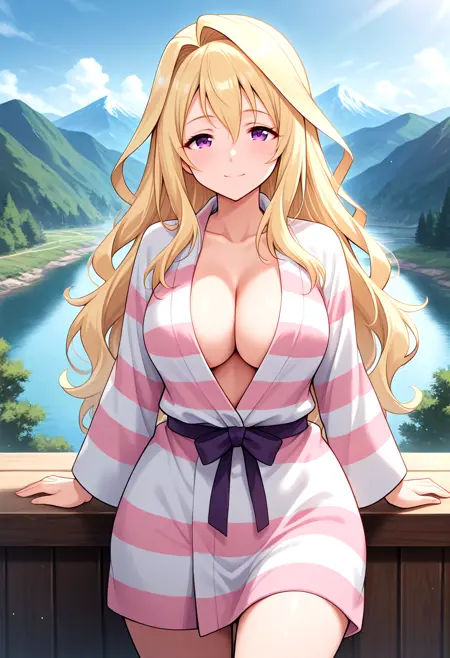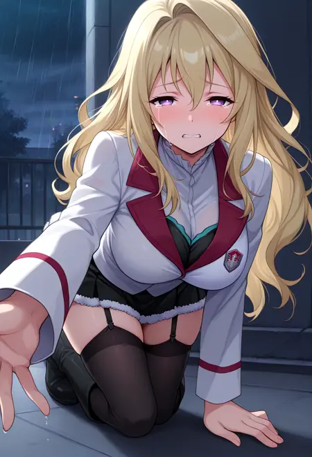 基础角色外观: 大胸,金发,非常长的头发,紫色眼睛