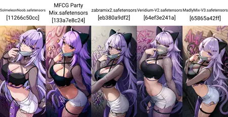 Lora trained on 9 official outfits of Nekomata Okayu from Hololive. You can copy the prompts for each outfit and their variations, and you can tweak hairstyles and accessories. The outfit prompts are getting quite long, so I recommend putting BREAK before the outfit, dividing your full prompt into segments. This type of detailed prompt with no unique activation tag works very well with multiple complex outfits in illus/noob. The last example shows a different character in one of this Lora's outfits.