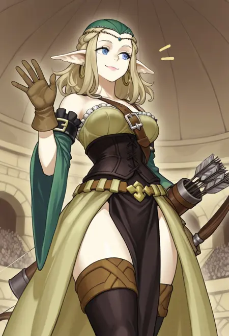 ・高解像度修正前に、彼女の緑色の頭飾りは一貫性に欠けることがあります。より一貫性を高めるために、ネガティブプロンプトのセクションに[ green cap ]を追加することをお勧めします。