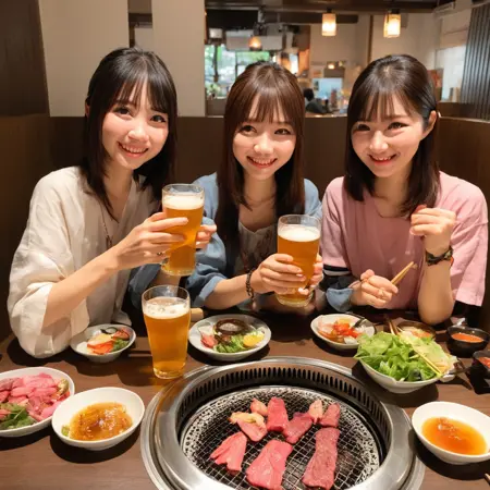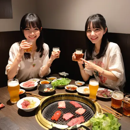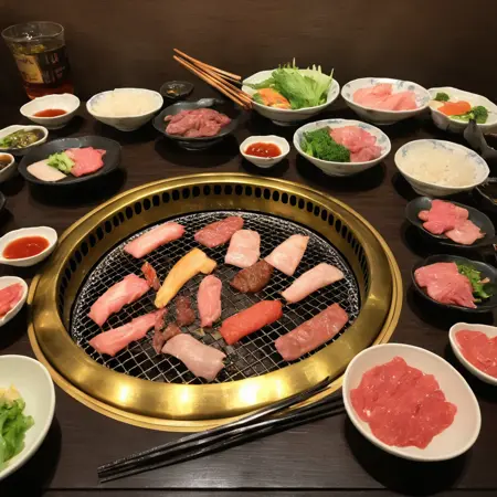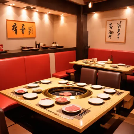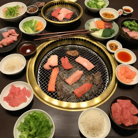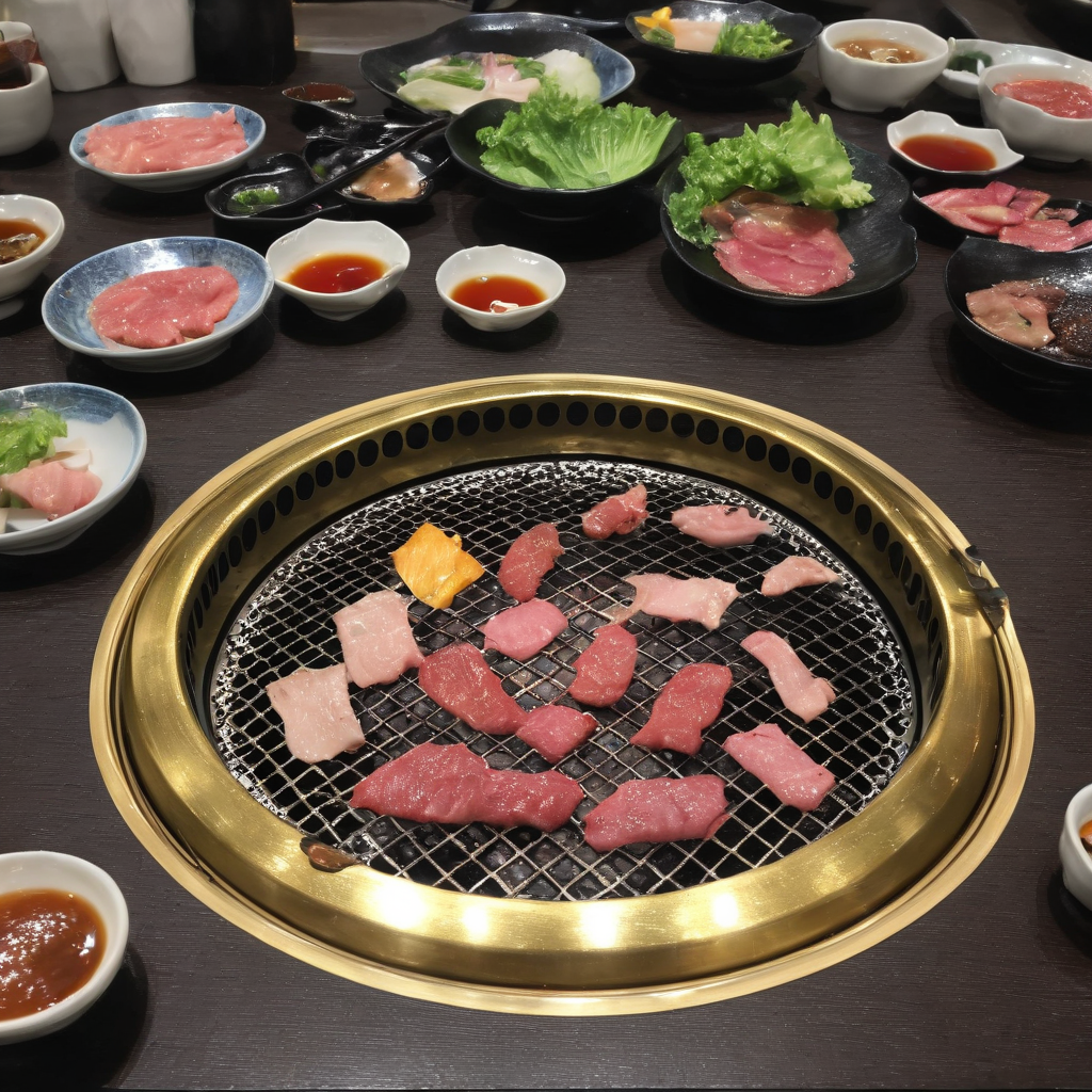我们学习了在日本烧肉店中常见的内置无烟烤架的餐桌场景。