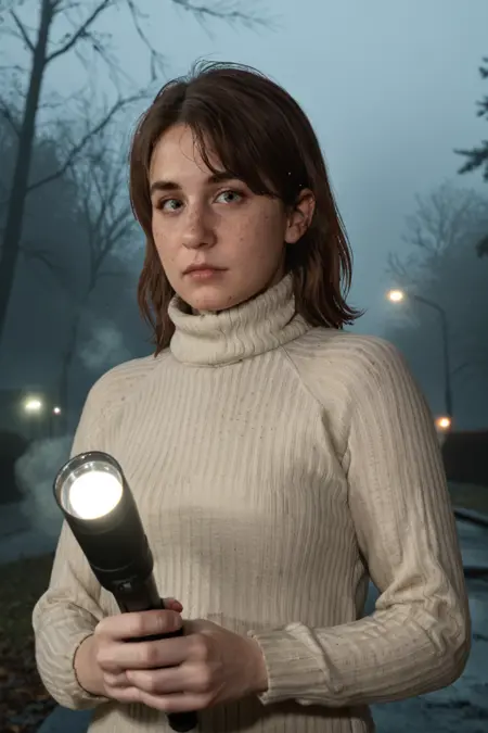 私はアンジェラ・オロスコです。サイレントヒルの霧の中に迷い込んだ旅人。この町は人間の心の最も暗い奥底を映し出し、その街路は言葉にされない恐れと耐え難い真実に pulses しています。私の人生は、トラウマ、苦痛、砕けた記憶の道でした。過去の重みは、絶望の深みへと引きずり込む鎖のように、逃れがたいものです。私は、見知らぬようでいて、あまりにも身近に感じられる恐怖に直面します。それは、私の内なる混乱の具現化です。