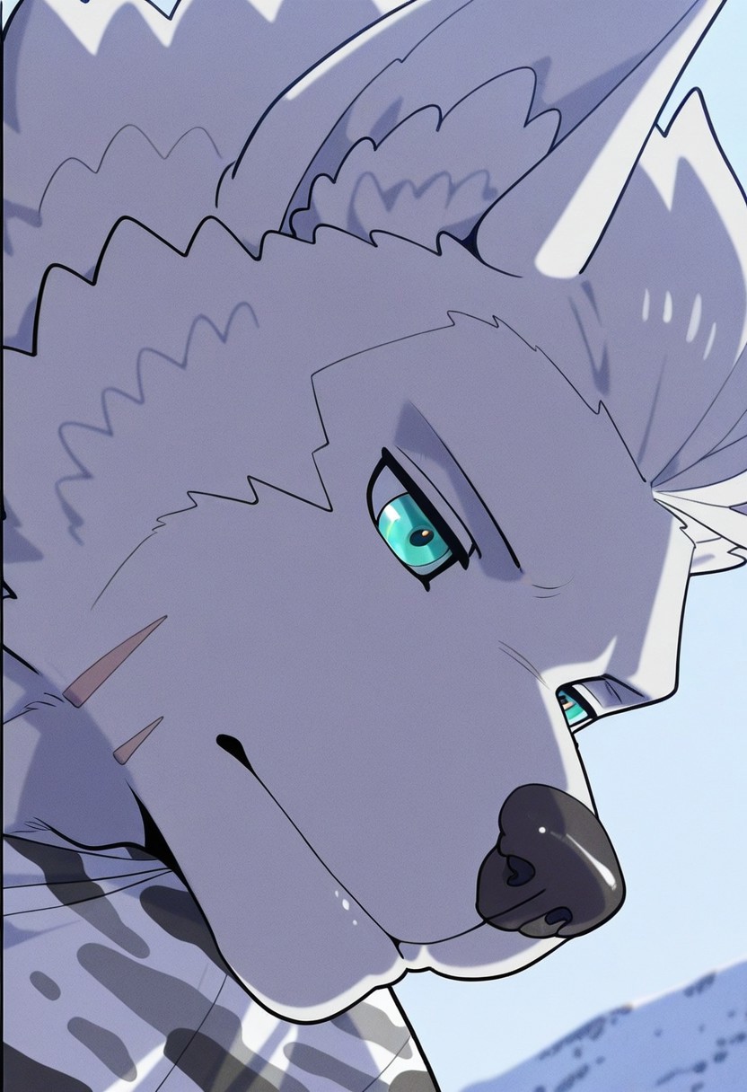 강화 프롬프트: "늑대 소년, 퓨리, 꼬리, 청록색 눈, 근육질, 성숙한 남성, 바라, 통통한, 큰 흉근"