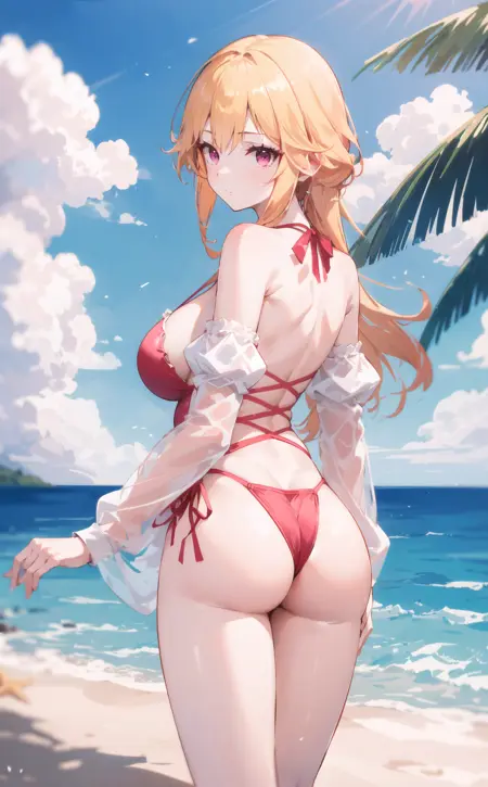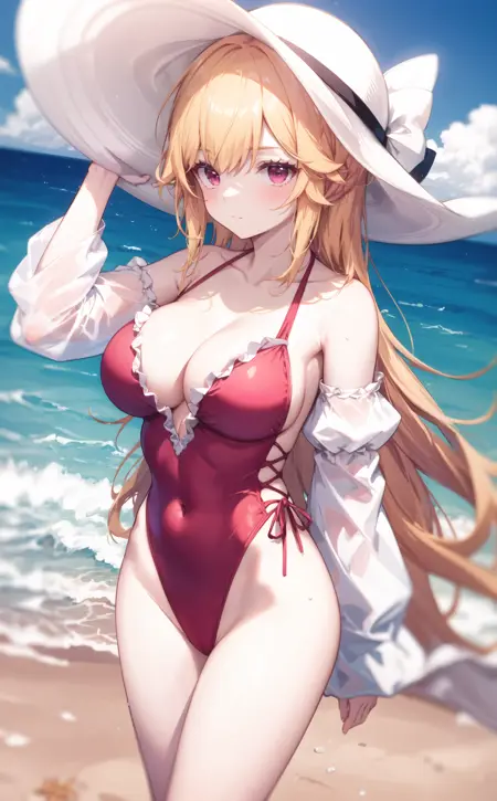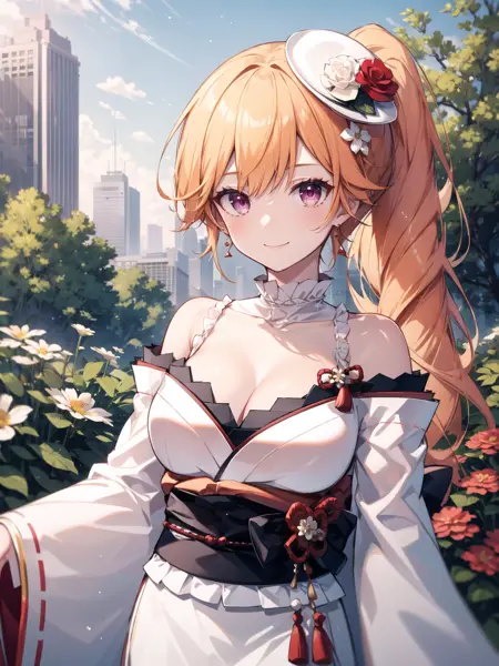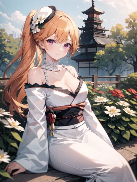 richelieuEvergreen, japanese clothes, bare shoulders, ponytail,