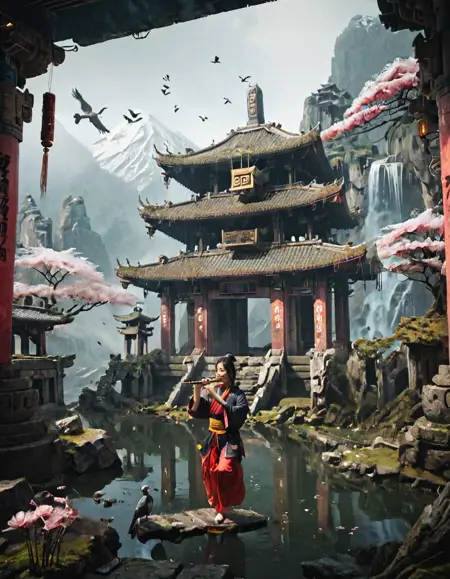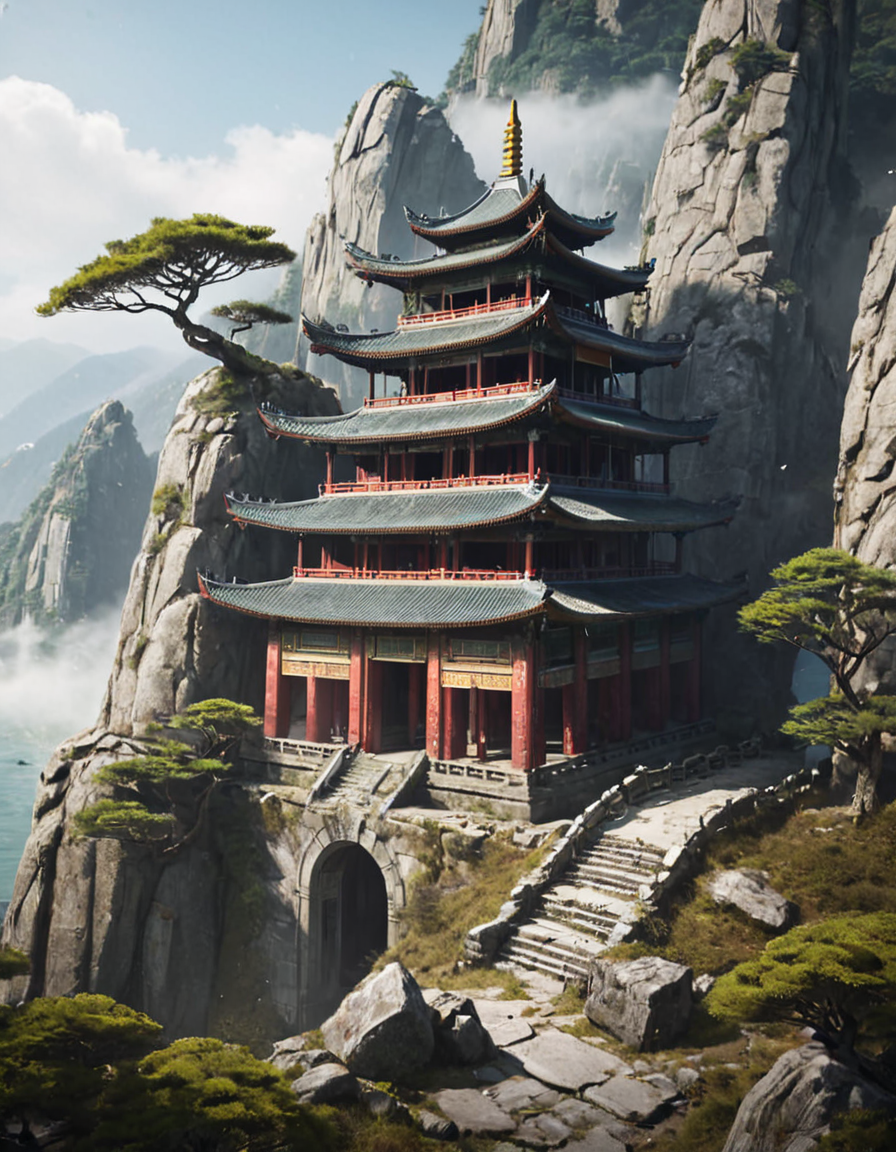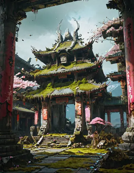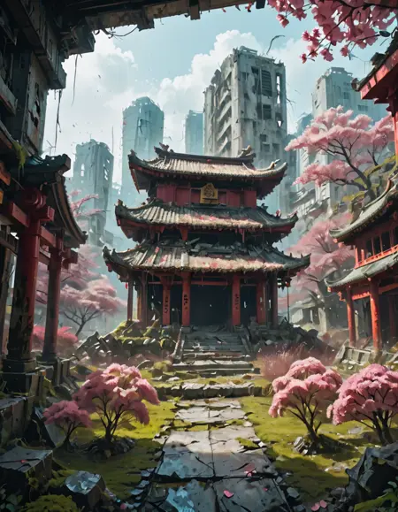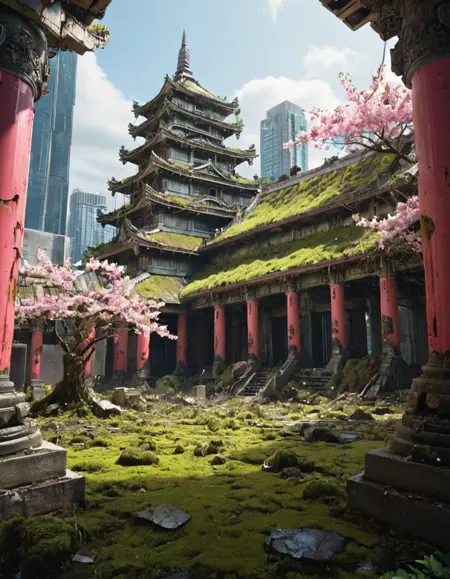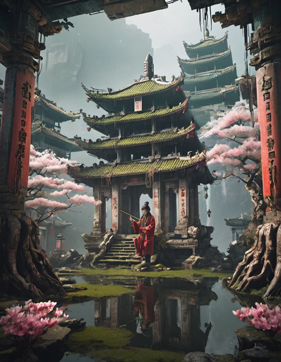(오래된) (고대의) (나무로 만든) (콘크리트로 만든) 전통적인 (아시아의) (안뜰) 사원
