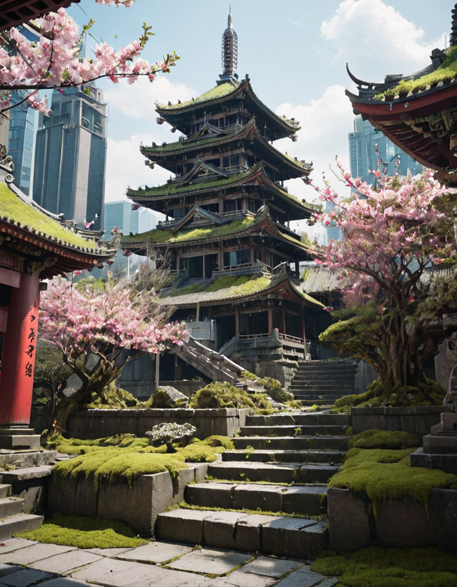 (오래된) (고대의) (나무로 만든) (콘크리트로 만든) 전통적인 (아시아의) (안뜰) 탑