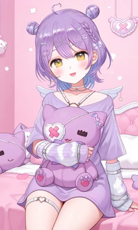 これは、Vspo!のVTuberである紫宮るな(Shinomiya Runa)についてです。このLoRAは彼女の4番目の衣装(天使の衣装)をサポートします。(他の衣装をご希望の場合は、andrasteが作成したShinomiya Runa LoRAをご利用ください。)