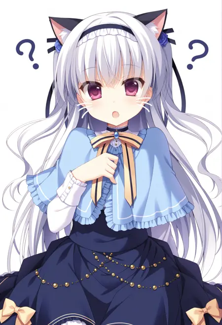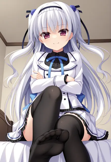 Yuugyouji Yoruko,two side up,black hairband,frilled hairband,white frills,hair flower,blue rose,hair ribbon,black ribbon,
