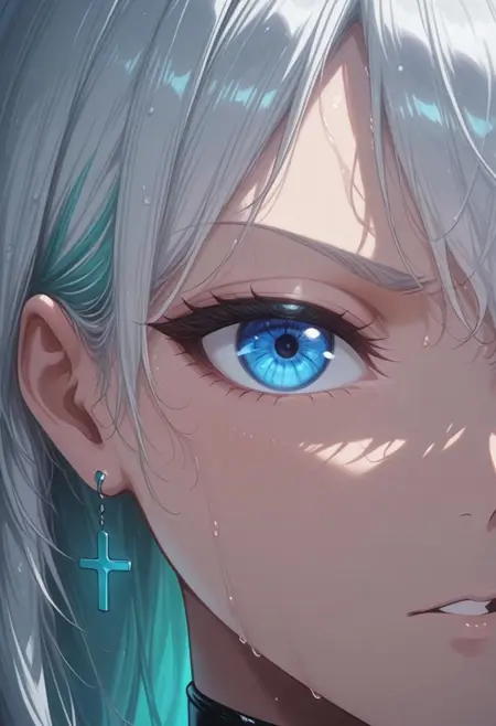 multicolored hair, white hair, aqua hair, blue eyes, long hair