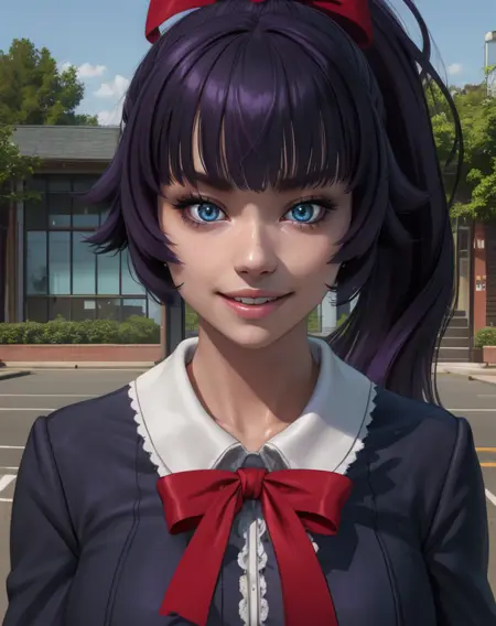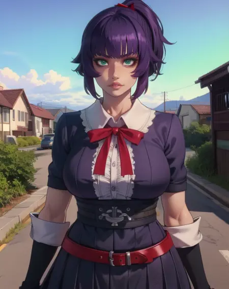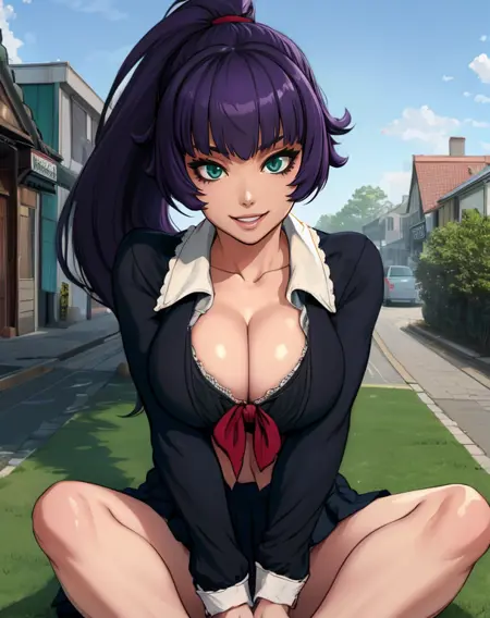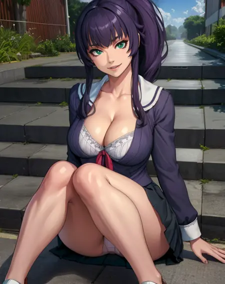 Saaya、紫髪または黒髪、青い目または緑の目、---ポニーテール、前髪、