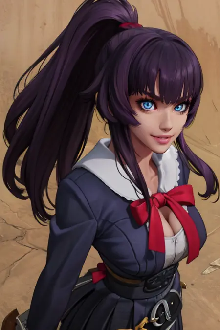 사야, 보라색 머리 또는 검은색 머리, 파란 눈 또는 녹색 눈, --- 꼬리머리, 앞머리,