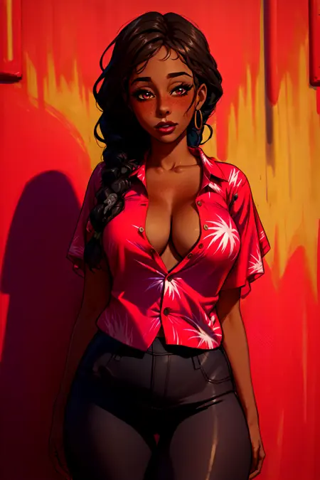 기본 프롬프트: 1girl, solo, 빨간 하와이안 셔츠, 한 줄 땋은 머리, 주근깨