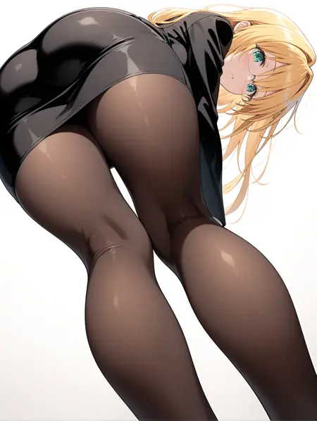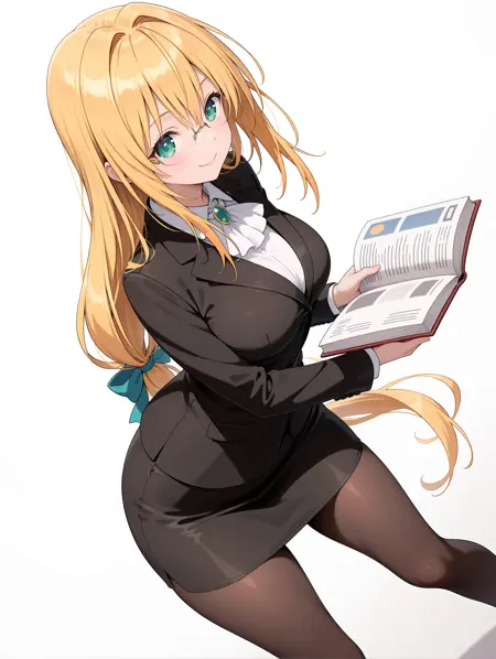 복장: t_clothes, 흰색 칼라 셔츠, 검정 재킷, 검정 스커트 수트, 팬티호스,