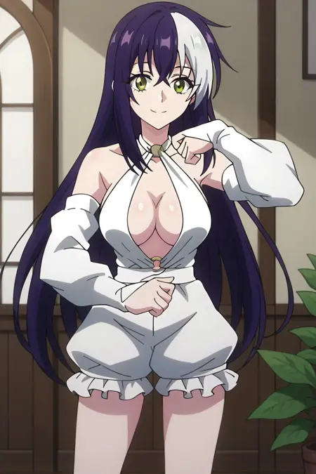 | Trained Words | Tiera Lucent, white hair, purple hair, multicolored hair, streaked hair, green eyesCopied! white dress, detached sleeveles, halterneck, frilled shorts, o-ring, jewellery, white sleeves, bare shoulders, cleavageCopied! green jacket, cropped jacket, open jacket, black sports bra, black shorts, navel, white beltCopied! |