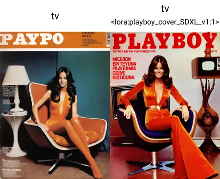 이 LoRA는 1960년대부터 2010년대까지의 플레이보이 매거진 스타일로 이미지를 생성하기 위한 것입니다.