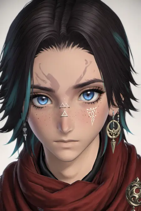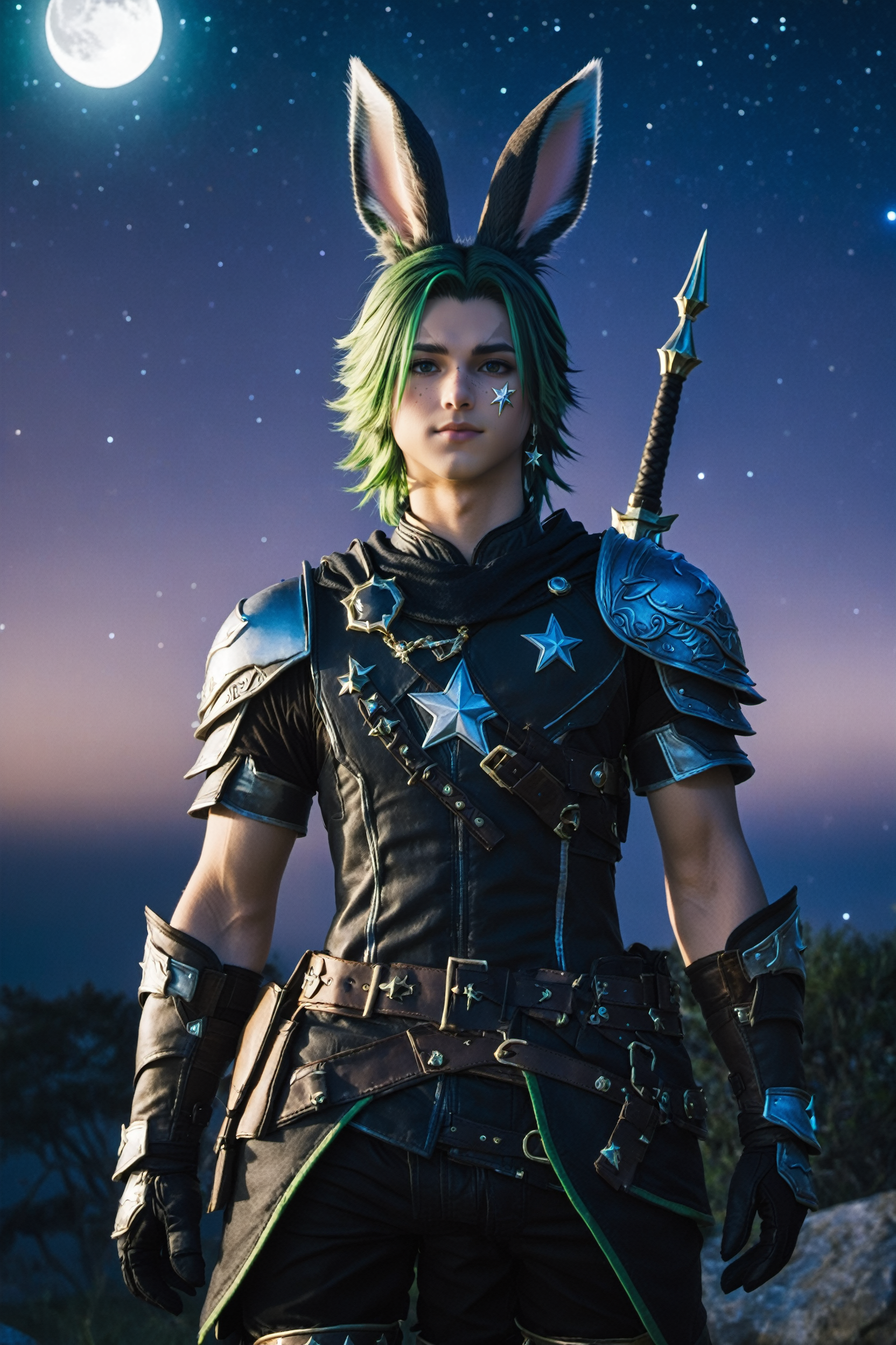 "음, 이번엔 내가 플레이하는 거라서 키티리의 아들이 같은 이름을 따랐지. 그는 반은 비에라야 (게임 안에서는 그게 불가능하니까 주의해), 반은 미코테야 (그래서 귀가 짧은 거야, 티어간이 말하길). 그리고 보라색과 녹색은 내가 마음속에서 항상 쓰는 색이니까, PFFT."