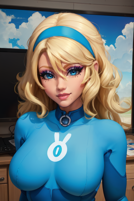 - 그녀의 첫 게임 복장은 파란 바디수트, 흰색 헤어밴드였으며, 토끼 꼬리가 있을 수 있음