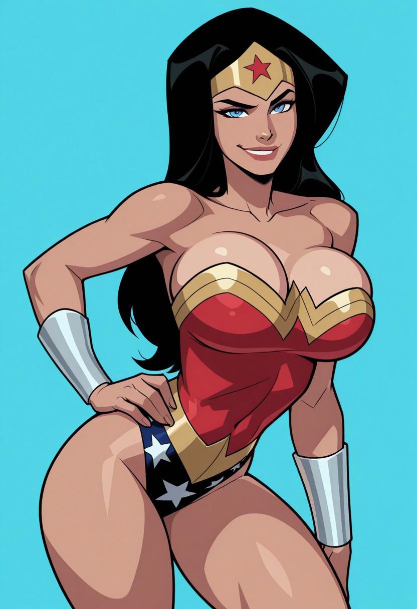 | 训练词汇 | optional: 1male, Steve Trevor, black shirt, brown jacket,已复制! 1girl, solo, wonder woman, black hair, long hair, gold tiara, blue eyes, bare shoulders, sleeveless, silver bracers, cleavage, red corset, gold belt, blue bottoms, Leotard, bare thighs, star print, red knee boots,已复制! |