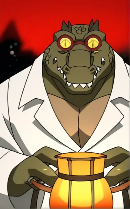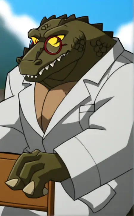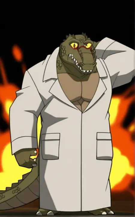 LabCoat_Leatherhead - (1)의 복장 위에 실험복을 입은 레더헤드