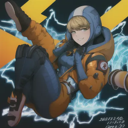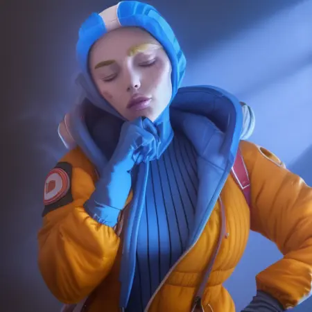 의상 - 후드 삼투형 수트, 수트, 흰색 수트, 후드, 자켓, 주황색 자켓, 장갑, 무릎 패드, 후드 자켓, 파란 장갑, 근육형 수트, 파란 수트, 허벅지 스트랩, 케이블, 파란 모자