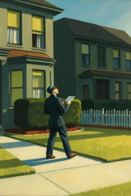 ホッパーの最も有名な絵画は、都市の風景に孤立した人物を描いています——ダイナーで一人座る人、窓際に立つ人、空っぽのホテルの部屋で待つ人。