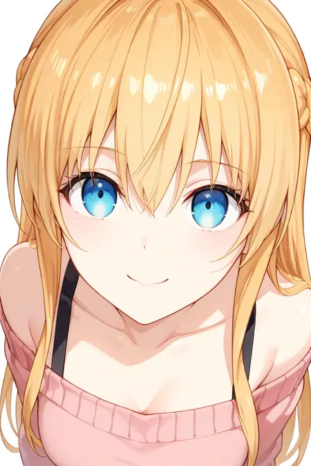 ArtemisiaAshcroft, blonde_hair, blue eyes, long hair, sidelocks, hair between eyes, french braid,