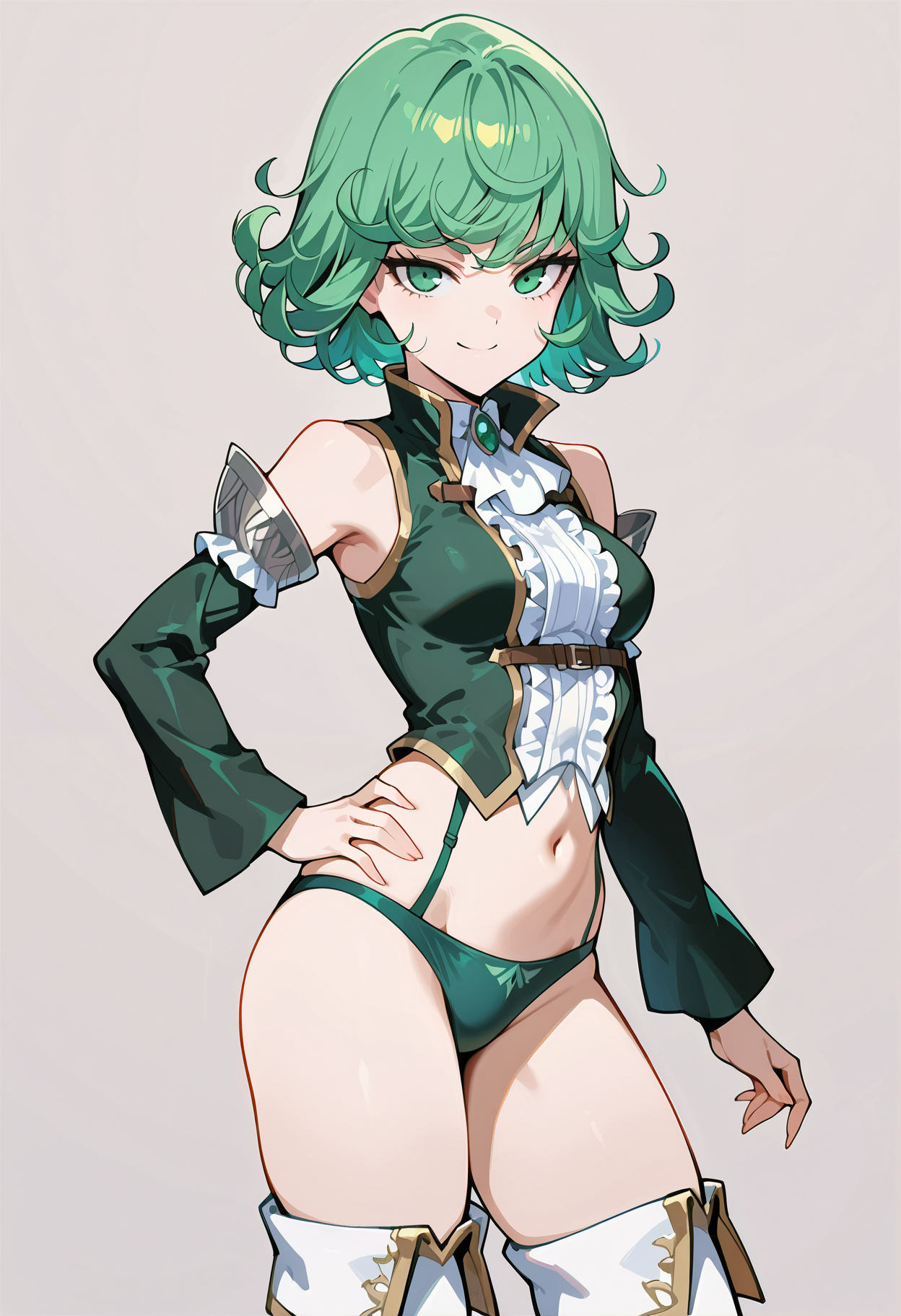p4-coronet, 比基尼铠甲, 分离袖子, 内裤, 吊袜带, 露脐, 短上衣, 裸露肩膀, 花边, 中央花边, 肚脐, 领结, 胸针, 过膝袜
