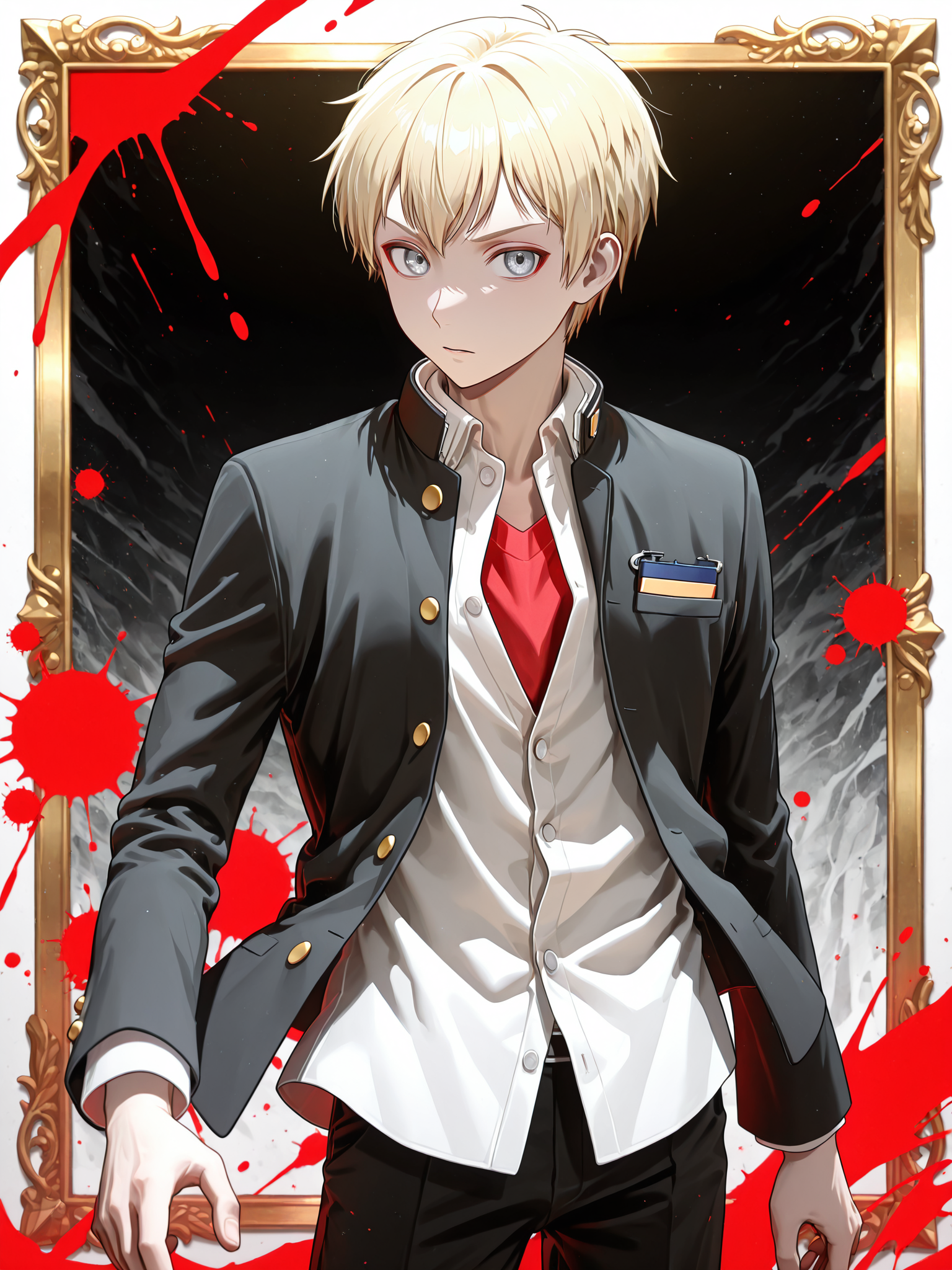 Yoshiki_CoPa, 1boy, short hair, blonde hair, dark grey eyes