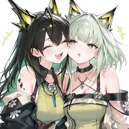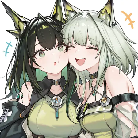 強化特徴(任意):黒髪、内側に色付きの髪、緑髪、緑の目、