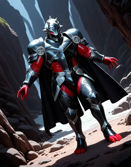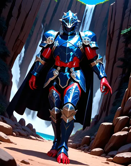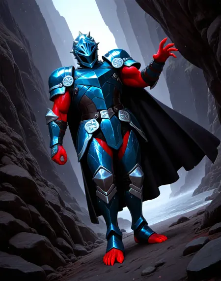 有时添加额外的提示词如(红色皮肤,红色鳞片身体,蓝色盔甲,黑色斗篷,上臂和大腿上有红色鳞片,红色爪足)有助于更准确地呈现角色外观。