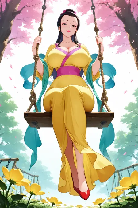 san sheng mu, hair bun, long hair, black hair, lipstick, makeup, chinese clothes, hagoromo, shawl