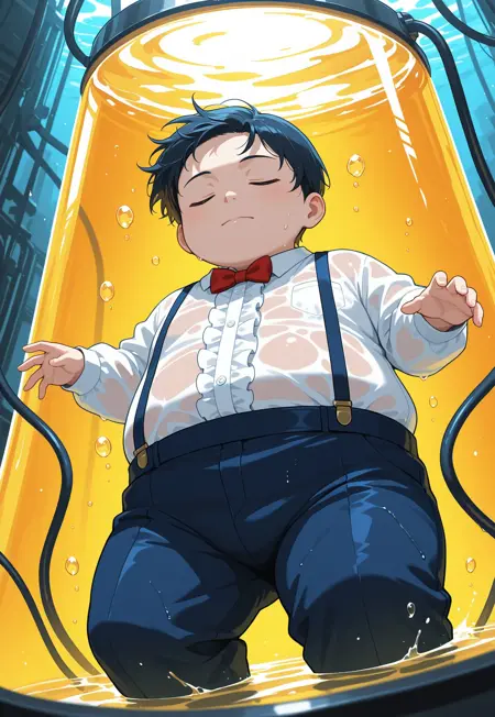 负面提示:(以下内容),低角度,向下看,注视物体,头部出画框,荷叶边袖子,背带,汗水,(徽章、别针、胸袋),胸大肌,bara,肌肉发达,肌肉,腹斜肌,