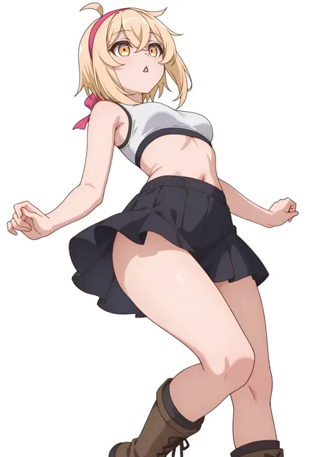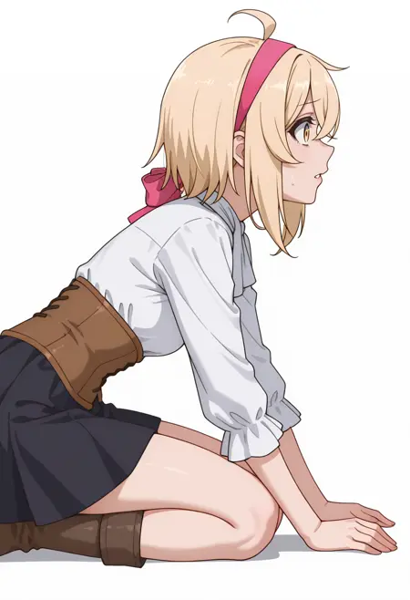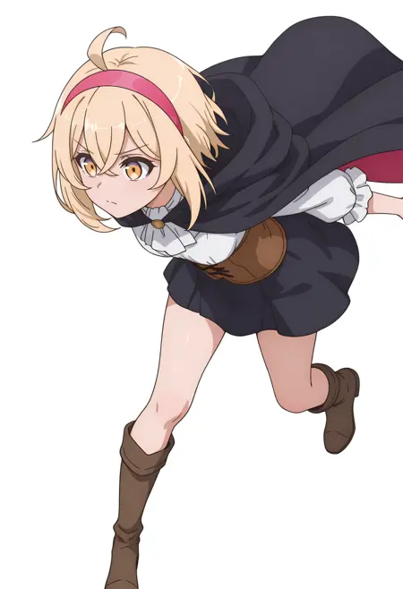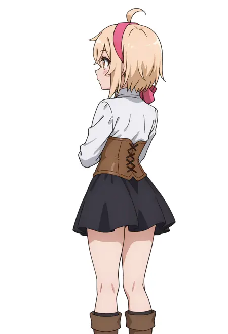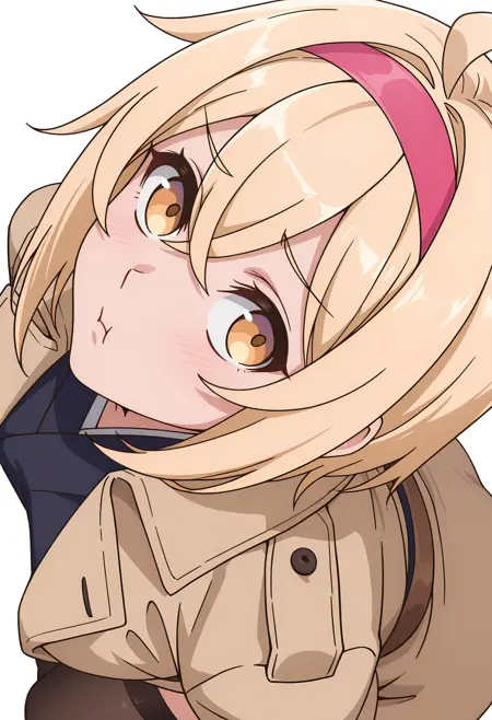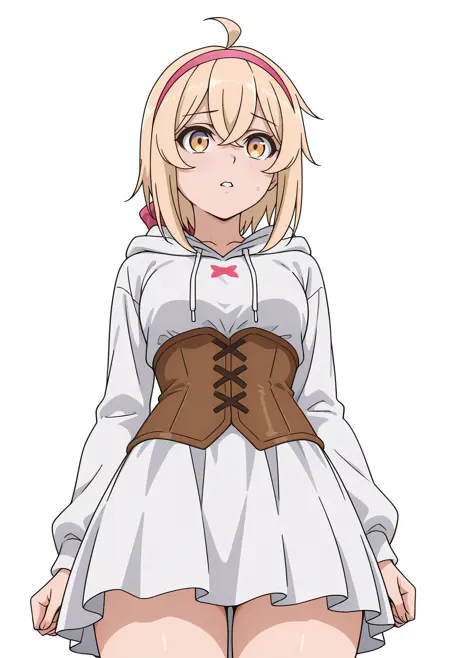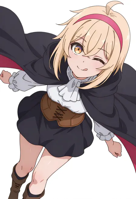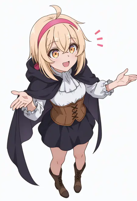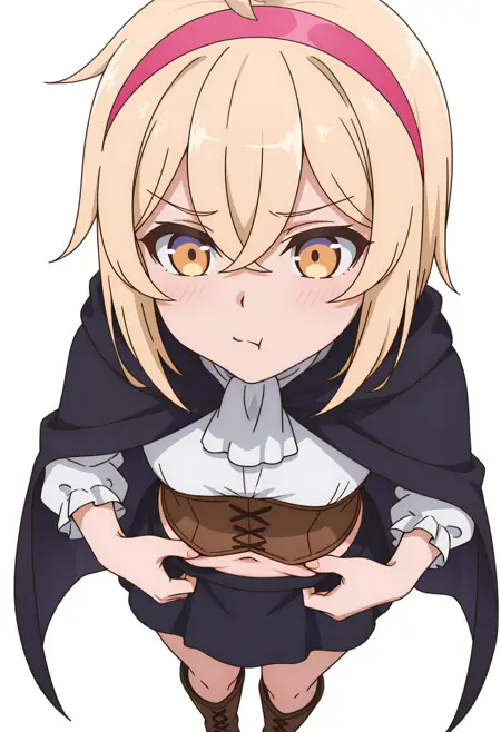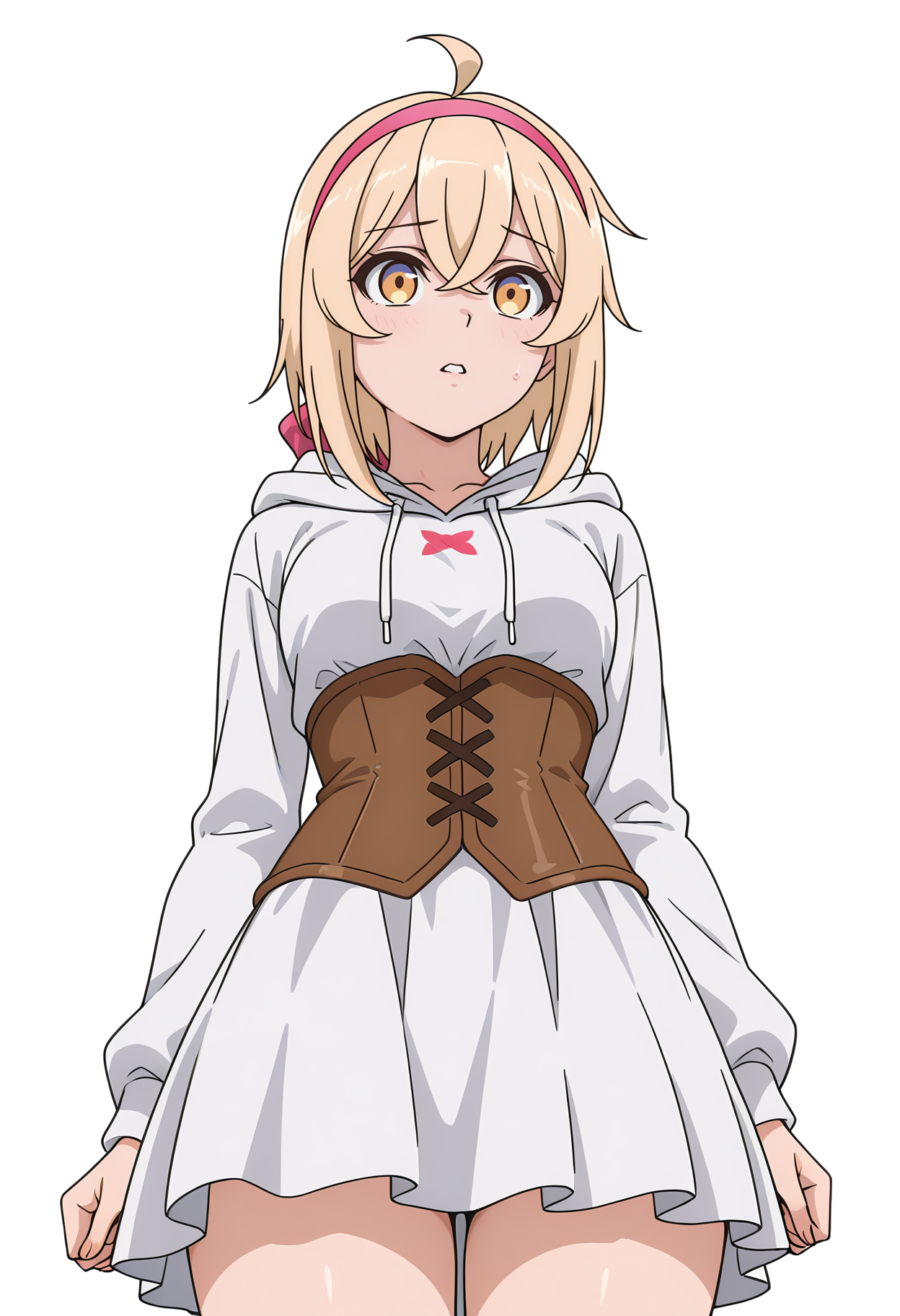 alyssacnn,1girl, blonde hair, pink hairband, short hair, yellow eyes, hair between eyes, ahoge,