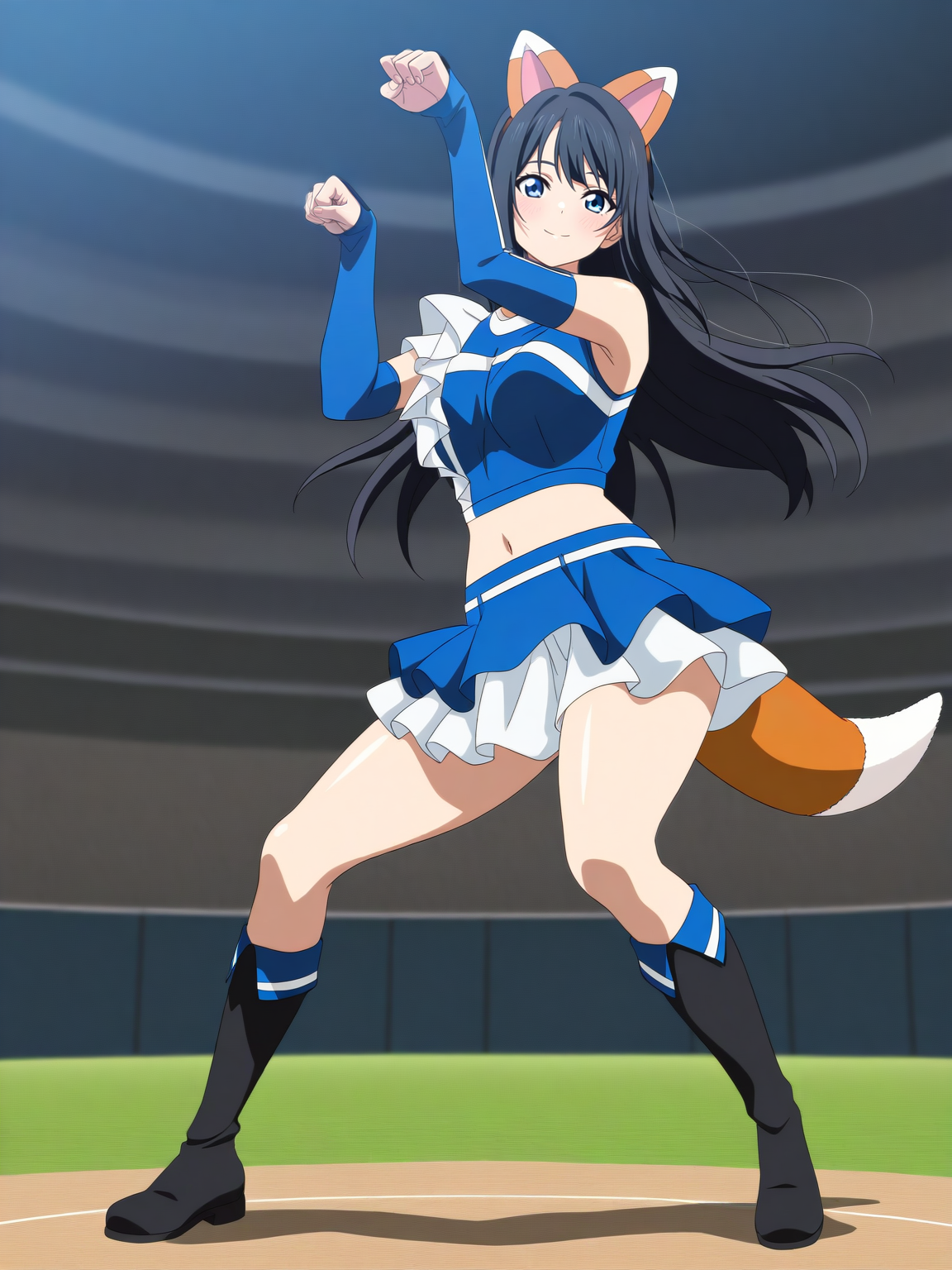 This LoRA is trained on the outfits of the Fighters Girl cheerleading team from the Japanese professional baseball team, the Hokkaido Nippon-Ham Fighters.
