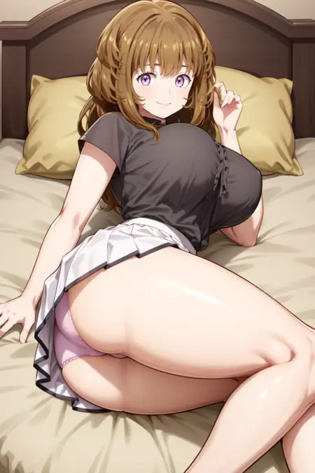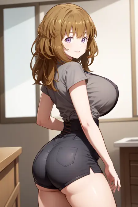 辅助词:1girl , large breasts , brown hair , purple eyes ,