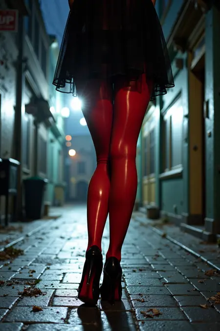 스커트, 드레스, 바지에 긴 다리, 옵션으로 라텍스를 사용하고 유연한 색상으로 표현.
