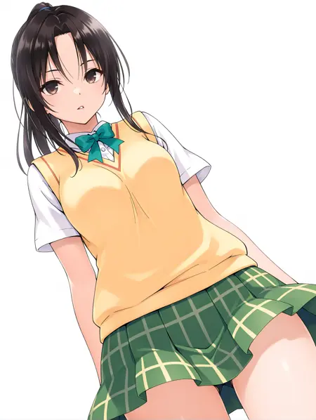 트리거 단어 ・rin, 갈색 눈, 검은 머리, 중앙 분할 앞머리, 꼬리머리,