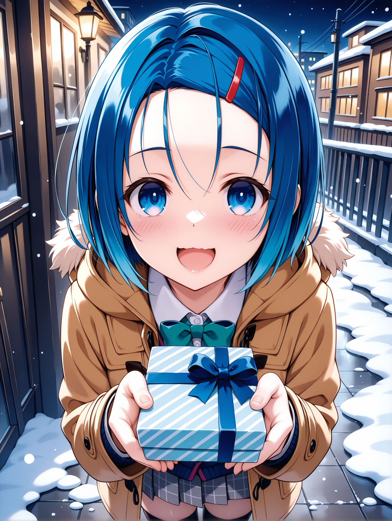 트리거 단어(헤어 클립 있음)・h_clip,blue hair,blue eyes,