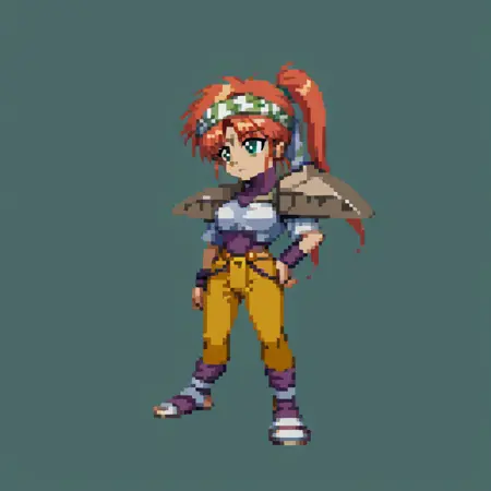 このキャラクターの知名度が低いことから、データセットは小さく、品質も不安定です。したがって、出力結果は期待値に応じて異なる可能性があります。このバージョンでは、以前は装飾品と誤解されていた額の模様を正しく認識するようになっていますが、精度はまだ高くありません。また、サンプルデータの色の不整合のため、色合いの結果も不安定になります(公式アートでは紫色の領域がありますが、実際のゲームスプライトではこれらの部分が青色で塗られています。「正しい」色合いについて一貫した答えはありません)。