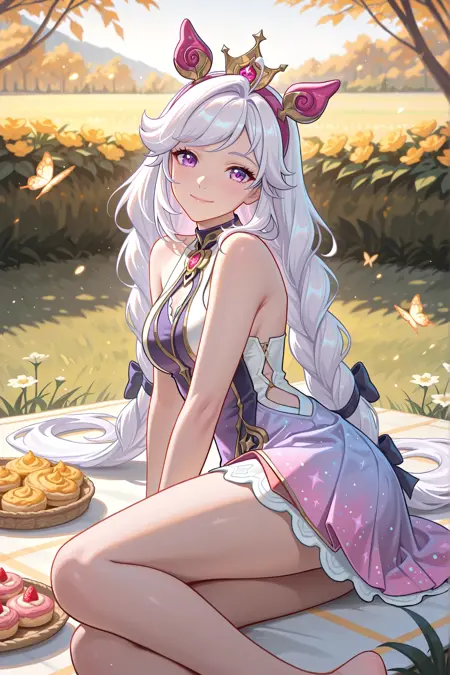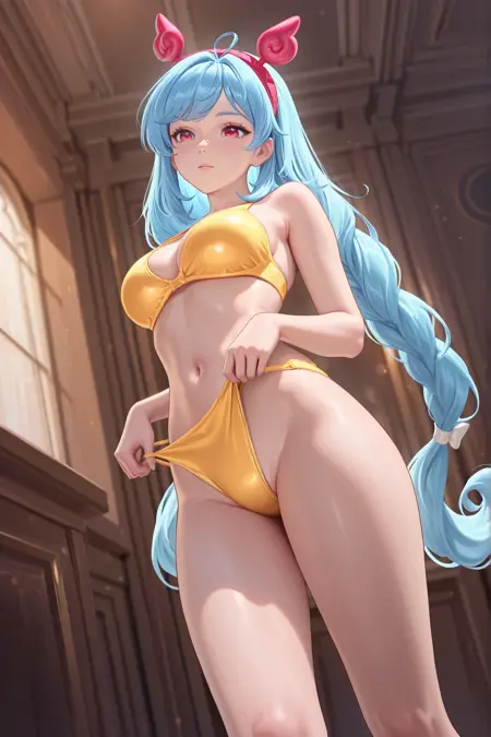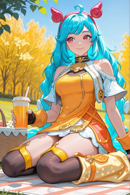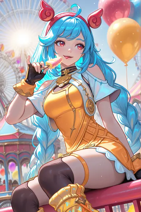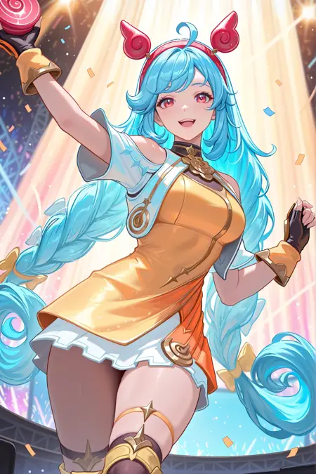 🧠 Trigger Words (Default):cicidefault, 1girl, very long hair, blue hair, twin braids, bangs, magenta red eyes, hairband, ahoge, hair bow, yellow short dress, fingerless gloves, bare shoulder, black kneehighs, yellow leg warmers, red footwear