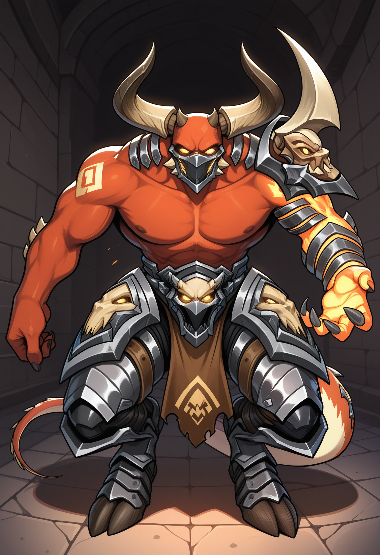 主服装:金属面具、单肩甲、腰布、腿甲、单臂钢甲,