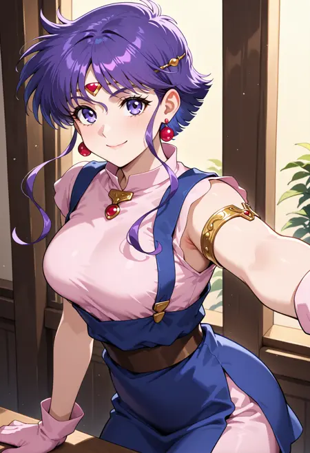 srw_xenia, purple hair, short hair, short hair with long locks, sidelocks, purple eyes, breasts,